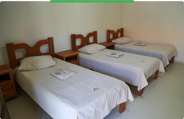 Suítes individuais, duplas, triplas e quádruplas, adaptadas para prevenção de quedas.