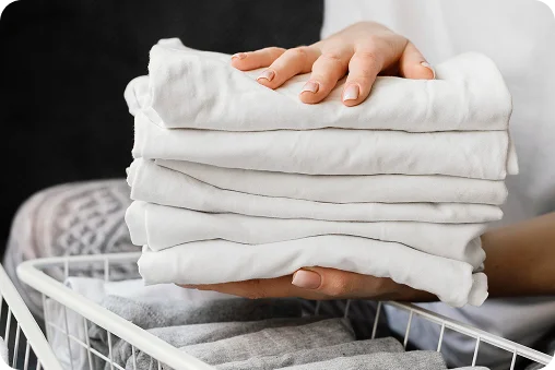 Serviço de higienização de roupas pessoais e de cama, garantindo praticidade e cuidado diário.
